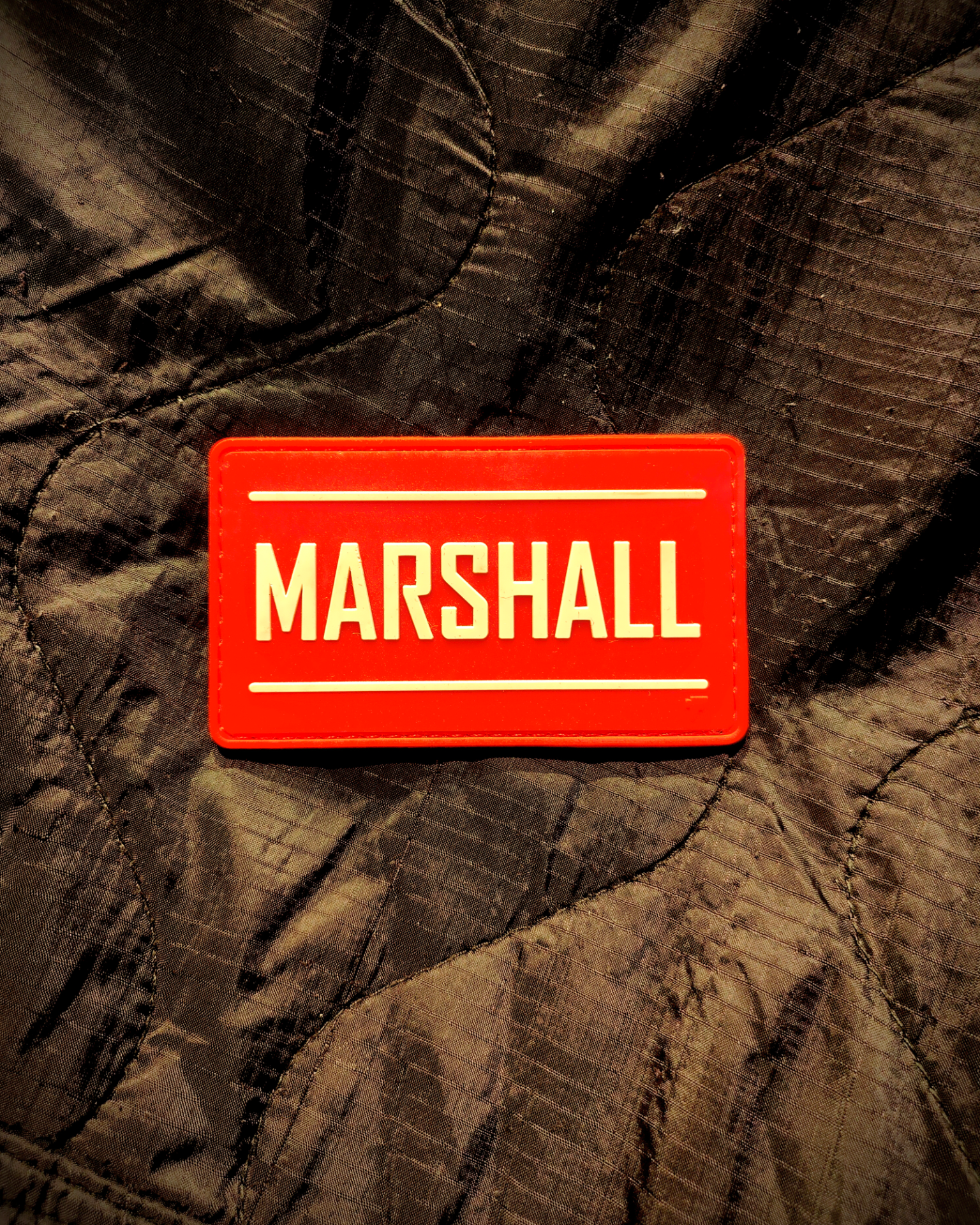 De patch heeft een felrode achtergrond met contrasterende witte "MARSHALL" tekst, waardoor spelers in één oogopslag weten wie de leiding heeft. Geen discussie, geen verwarring.